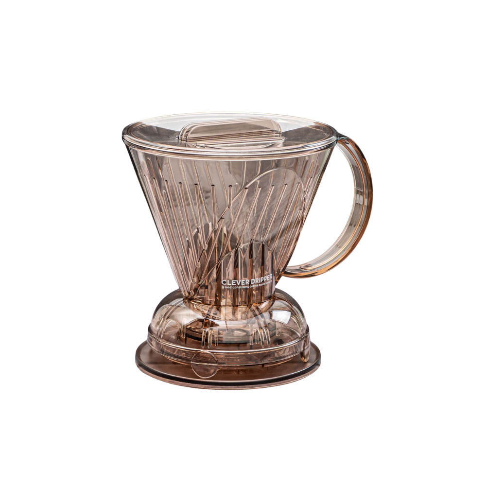 The Clever Dripper. An immersion pour over. Clever recommends 2tbs (26g) coffee to 1.7 cups (400 g) water for a stronger cup. I usually estimate the coffee visually and swirl hot water over the grounds until 2/3 full. Let the coffee stand three minutes for a stronger brew. Place the brewer on a cup & prepare coffee as usual.